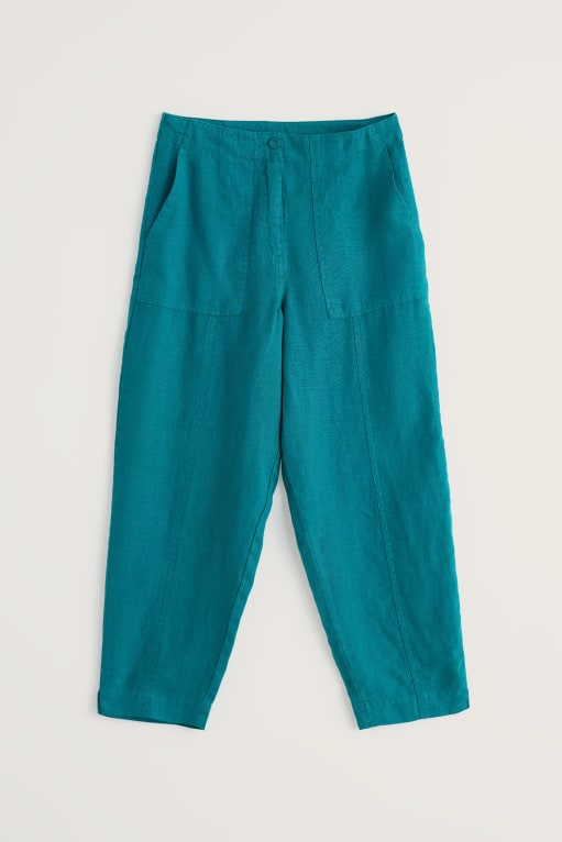 Meet your new favourite crops. These straight-leg trousers are made from naturally cool and breathable linen, and have been garment-dyed for a rich colour with a lived-in look.  Seasalt have added thoughtful details like a grown-on waistband for a smooth finish, and little side splits in the hems. There are two large utility-style pockets to the front as well as two patch pockets at the back.