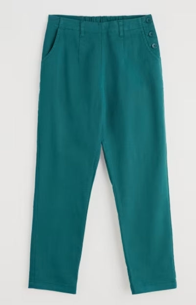 Our bestselling Waterdance Trousers are a year-round favourite, with a touch of stretch for ease of movement. They sit just below the natural waist and have a relaxed tapered shape, which looks great with boots or rolled up above sandals. They are styled with side fastening buttons and an elasticated back waistband for a comfortable fit and finished with two slanted side pockets and two back pockets.